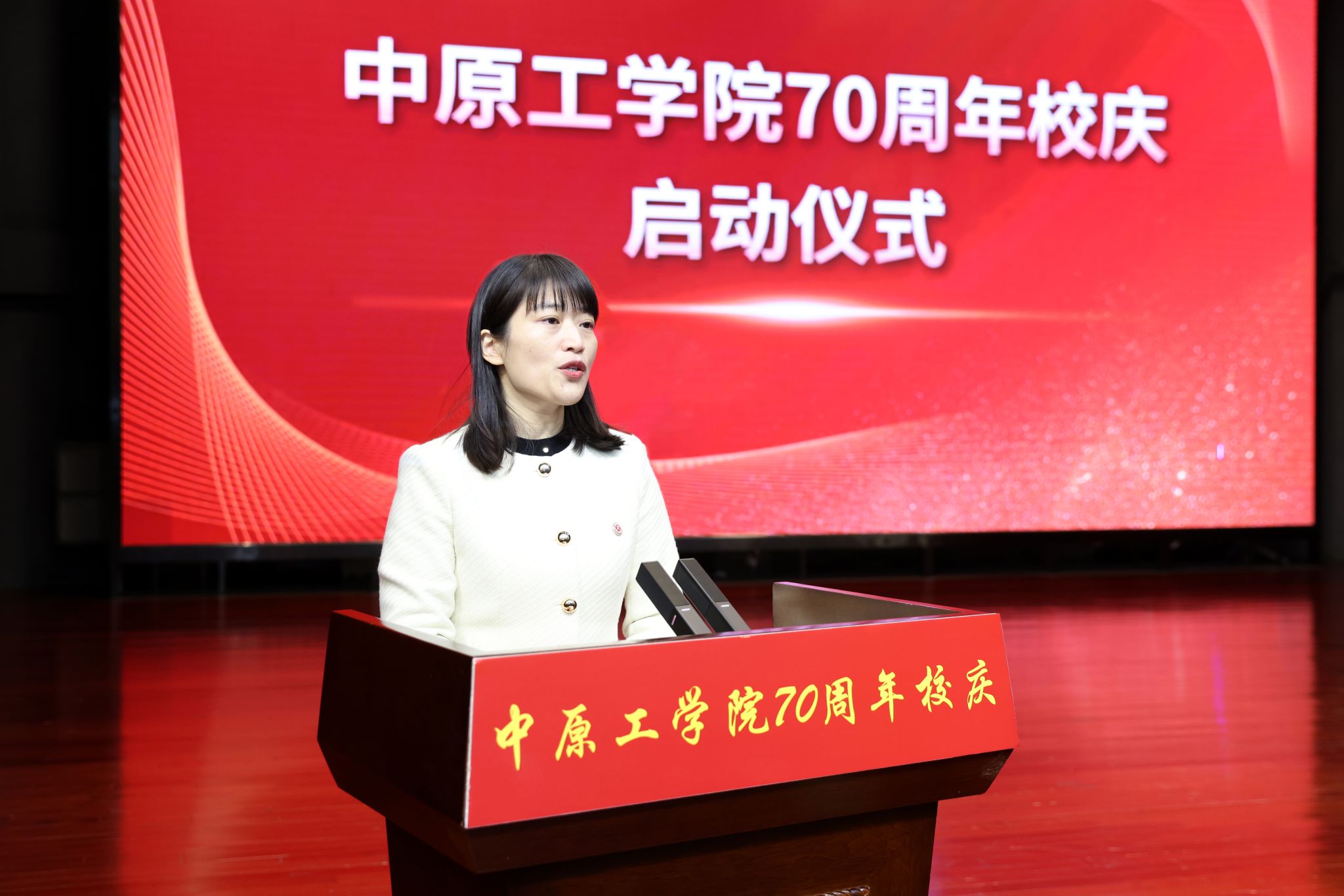 党委副书记、工会主席宋晓炜主持仪式、发布校庆主题和校庆标识